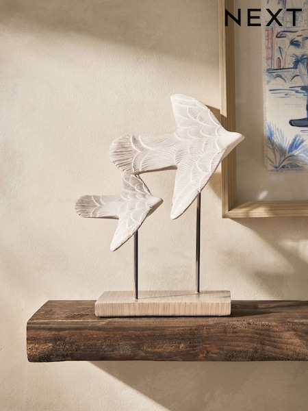 Set of 2 Cream Hand Painted Sea Birds Ornament
