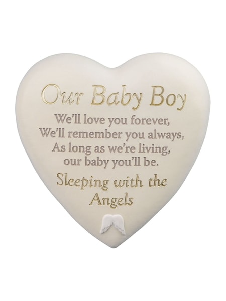 Widdop White Graveside Heart Plaque - Our Baby Boy Ornaments