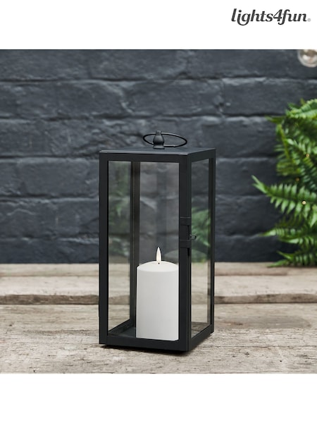 Lights4fun Bowen Black Garden Lantern with White TruGlow Candle