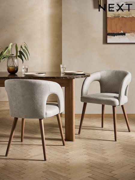 Set of 2 Easton Faux Leather Silver Mid Leg Orton Dining Chairs