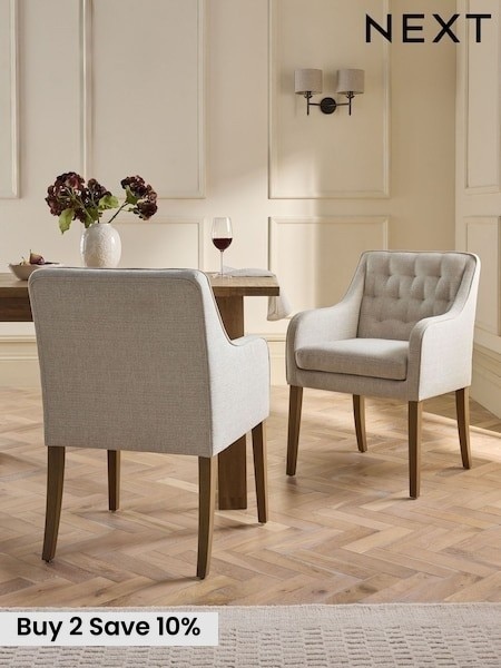 (738)Choosing the right dining chairs for your home is important to ensure comfortable family meals in a cosy and welcoming setting. Consider shape, upholstery and design features such as armrests to pick the perfect cushioning and support for you. At Next we strive for the perfect balance of style and comfort with quality materials that enrich your decor. Explore popular finishes such as wood, faux leather and velvet in an array of colours to find a set of dining room chairs that will complete your room beautifully. With space-saving designs as well as statement-making pieces, it couldn’t be easier to create a hub around the dining table for meals, homework, craft afternoons and more.
