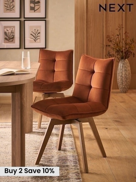 Set of 2 Soft Velvet Rust Brown Lucca Swivel Dining Chairs