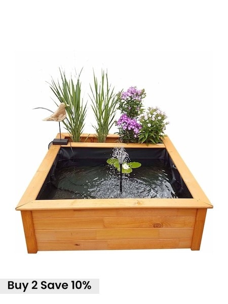 Promex Honey Brown Raised Square Garden Solar Pond Kit