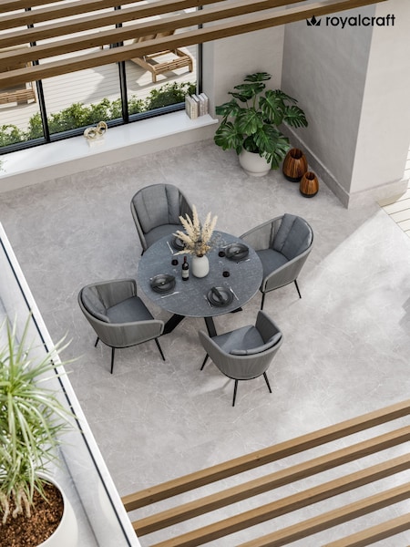 Royalcraft Natural Roma Garden Terrazzo Round Table With 4 Rope Dining Chairs