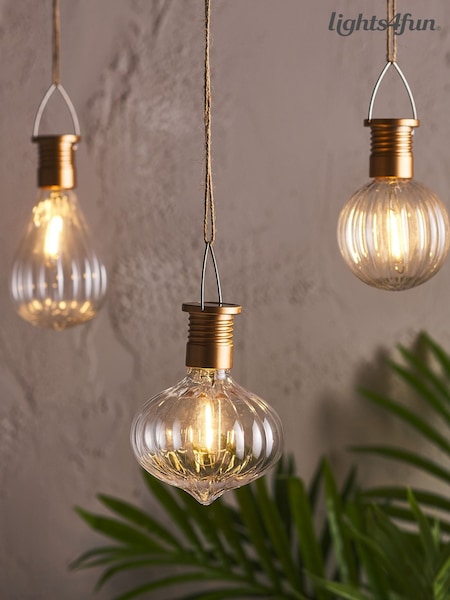 Lights4fun Set of 3 Copper Warm White Hanging Solar Lights