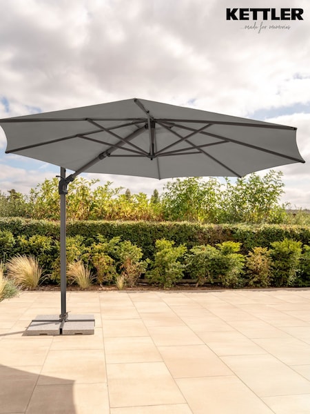 Kettler Slate Grey Aura 3m Round Garden Cantilever Parasol with Base Slate