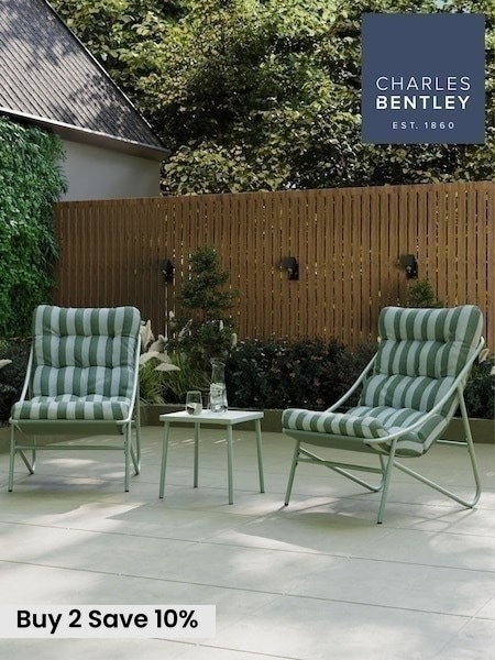 MADE.COM 3 Piece Green Estelle Garden Chair and Table Bistro Set