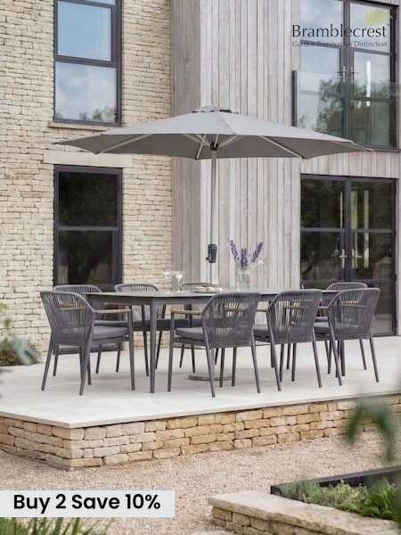 Bramblecrest Anthracite Antibes Rectangle Dining Table with 8 Chairs and Parasol