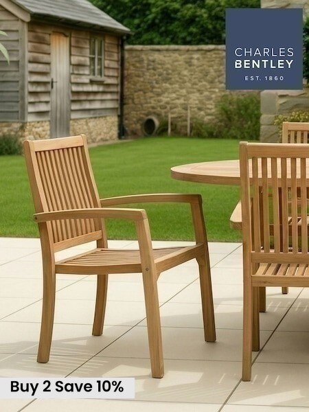 Charles Bentley Set of 2 Brown Teak Stacking Garden Chairs