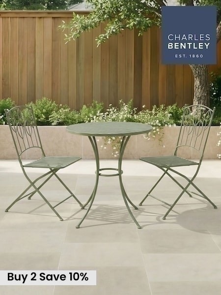 Charles Bentley Green Rustic Metal Garden Bistro Set