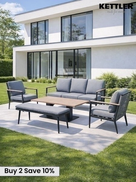 Kettler Anthracite Grey Tudor Garden Table, Sofa and Chairs Set