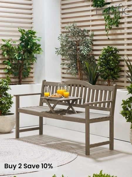 Pacific Grey Richmond Light Teak Acacia Wood Bench With Pop Up Table