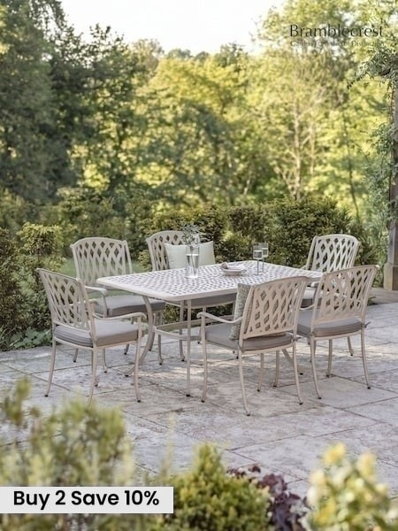 Bramblecrest Stone Rome 160 x 100cm Rectangle Table with 6 Armchairs & Seat Cushions