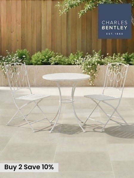Charles Bentley White Rustic Metal Garden Bistro Set