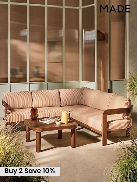 MADE.COM Green and Rust Stripe Avarna Garden Wood Corner Lounge Set