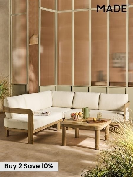 MADE.COM Off White Boucle Avarna Garden Wood Corner Lounge Set