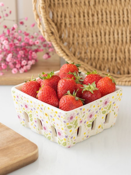 Something Different White Daisy & Duck Print Ceramic Berry Basket