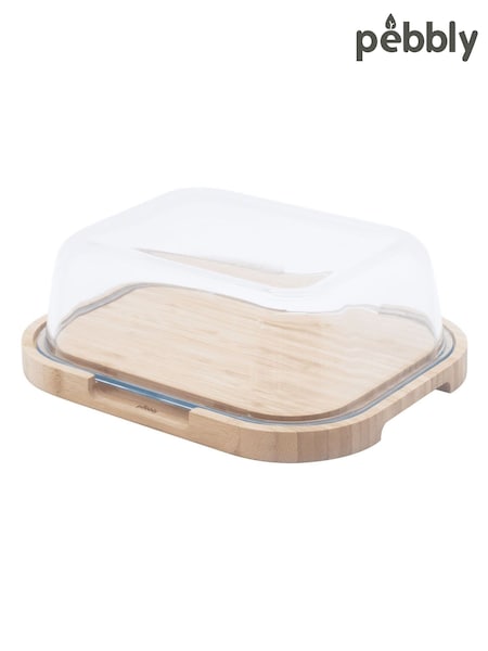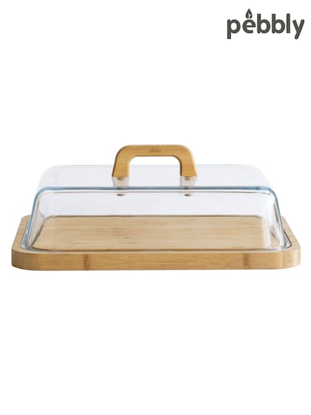 Pebbly Clear Bamboo Cheese Box Platter Glass & Bamboo With Handle