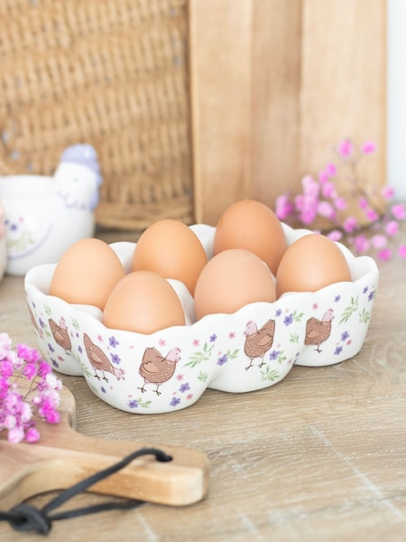 Something Different Cream Hen Print Ceramic Egg Holder
