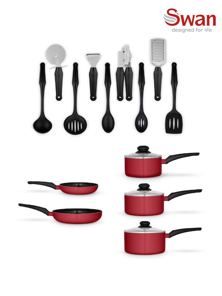 Swan Red Townhouse Cookware and Tool Set 14 Piece