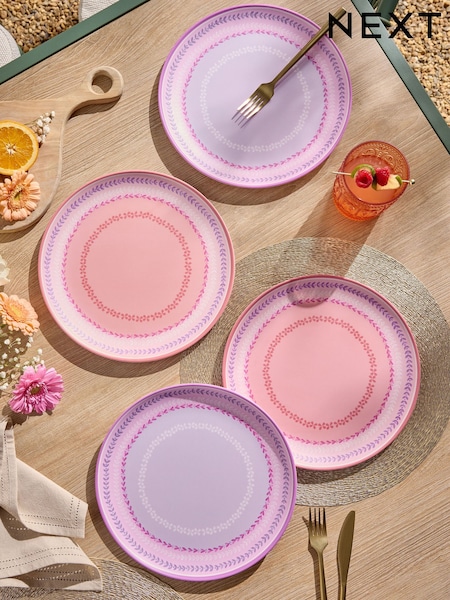 Cath Kidston 4 Pack Pink Raspberry Melamine Dinner Plates