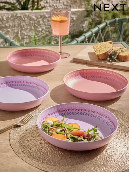 Set of 4 Pink Bold Tropic Picnic Pasta Bowls