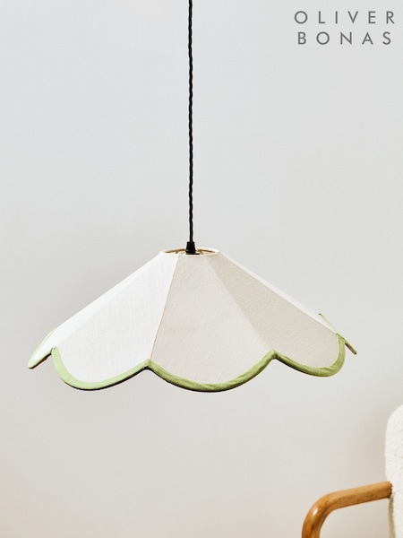 Oliver Bonas White Linen Scalloped Lamp Shade