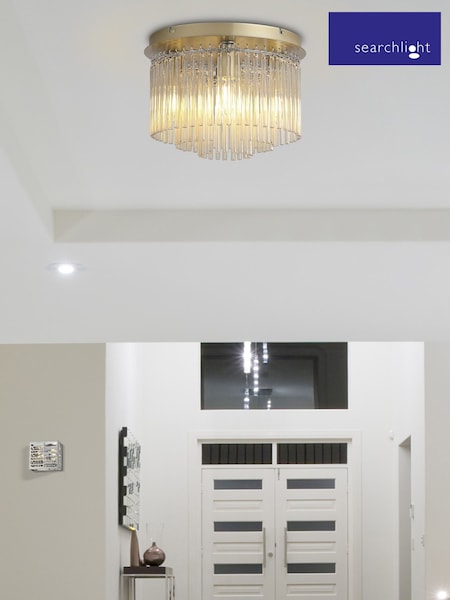 Searchlight Gold and Clear 3 Light Glass Rod Flush