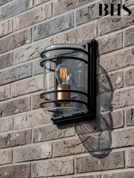 BHS Matt Black Chinon 1lt Glass Panel Outdoor Box Lantern
