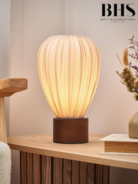 Pacific Natural Esha Conical Wood Table Lamp Base with Martigues 35cm White Boucle Tapered Lampshade