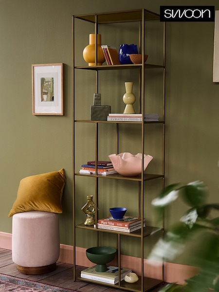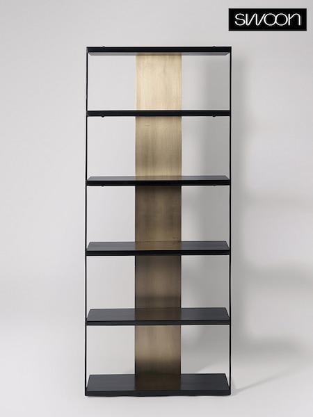 Actona Black Oak Seaford Metal Wide Wall Shelf with 3 Additional Oak Shelves