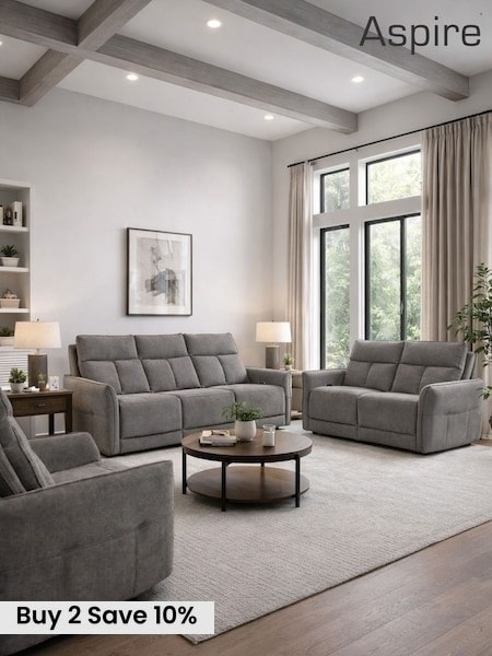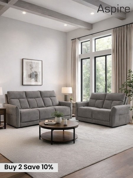 Aspire Furniture Twilight Grey Ashford Power Recliner Sofa Set