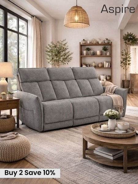 Aspire Furniture Twilight Grey Ashford 3 Seater Power Recliner Sofa