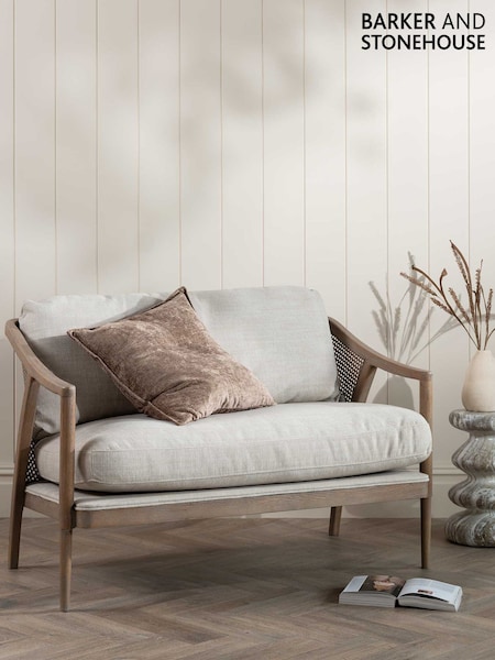 Barker and Stonehouse Beige Fabric Sofa with Rattan Sides
