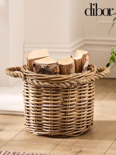 Gallery Home Set of 2 Natural Lidded Woven Willow Wicker Baskets with Rope Handles