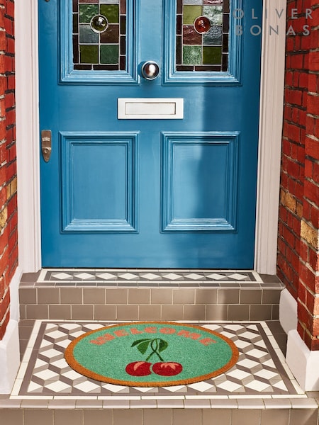 Oliver Bonas Green Welcome Cherries Round Doormat
