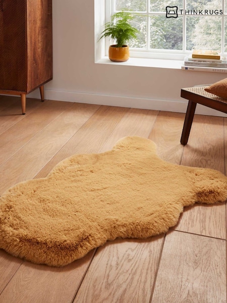 Think Rugs Mustard Super Teddy Single Sheepskin Plain Shaggy Rug