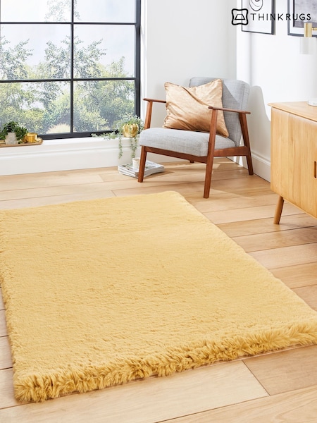Think Rugs Mustard Super Teddy Plain Shaggy Rug
