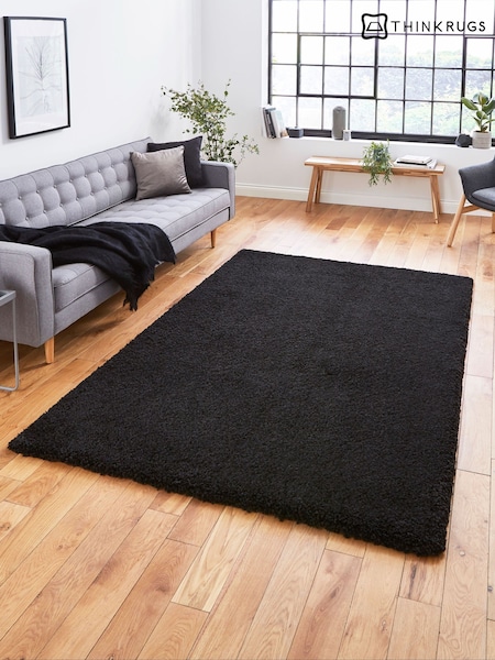 Think Rugs Black Sierra 9000 Plain Shaggy Rug
