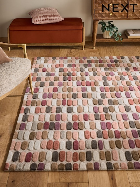 Rockett St George Pink Retro Curve Wool Tufted Rug