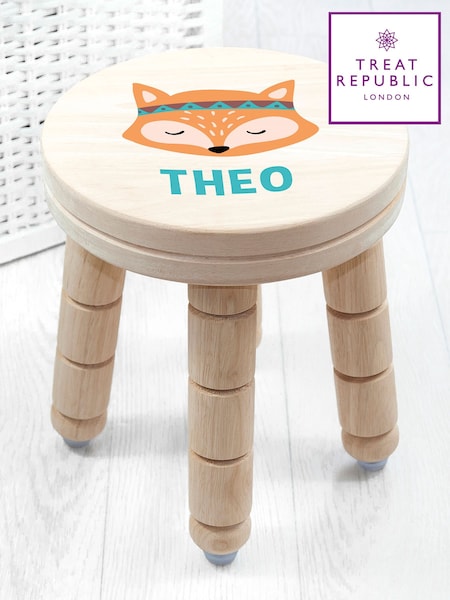 Personalised Cute Fox Kids Wooden Stool by Treat Republic