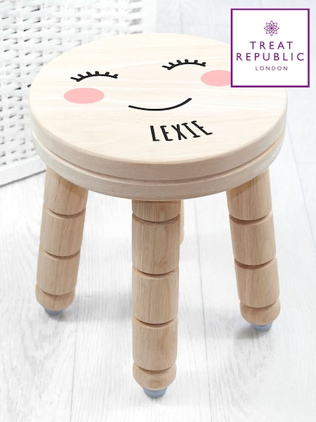 Personalised Cute Face Kids Wooden Stool by Treat Republic