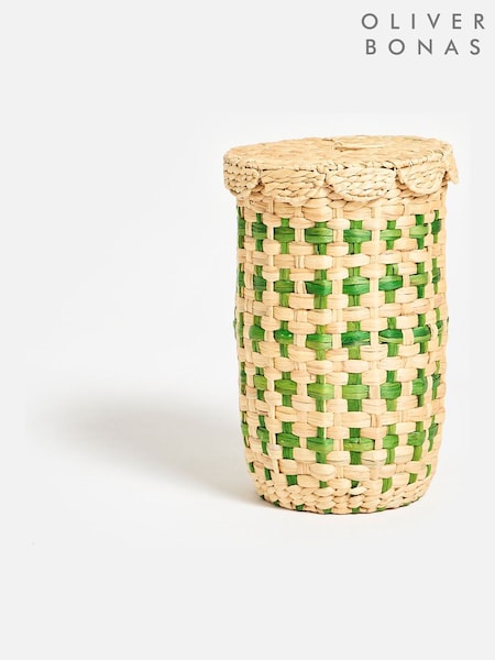 Oliver Bonas Blue Cross Weave Laundry Basket