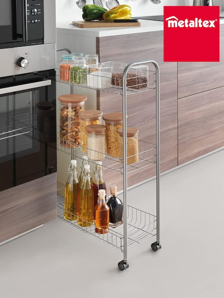 metaltex Silver Slim Deluxe 3 Tier Storage Rolling Cart