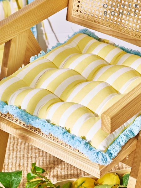 Oliver Bonas Yellow Striped Fringed Seat Pad