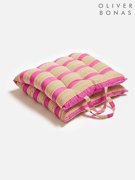 Oliver Bonas Pink Striped Padded Seat Pad