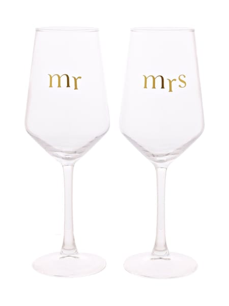 Widdop Set of 2 Clear Wine Mr & Mrs Glasses
