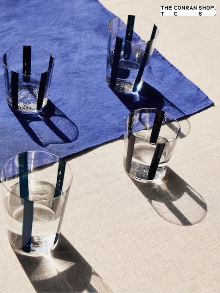The Conran Shop Set of 4 Navy Nova Stripe 360ml Tumblers