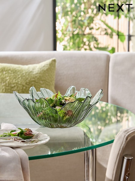 Green Rosa Flower Glass Serving Bowl
