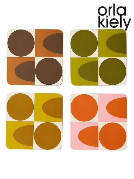 Orla Kiely Set of 4 Multi Spot Square Oval Coasters